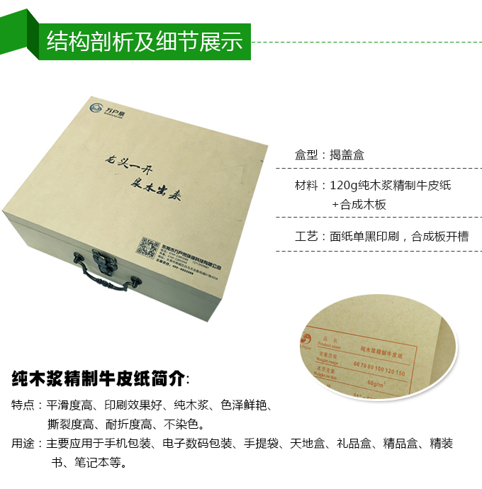 產(chǎn)品包裝盒采用的是本色條紋牛皮紙,...